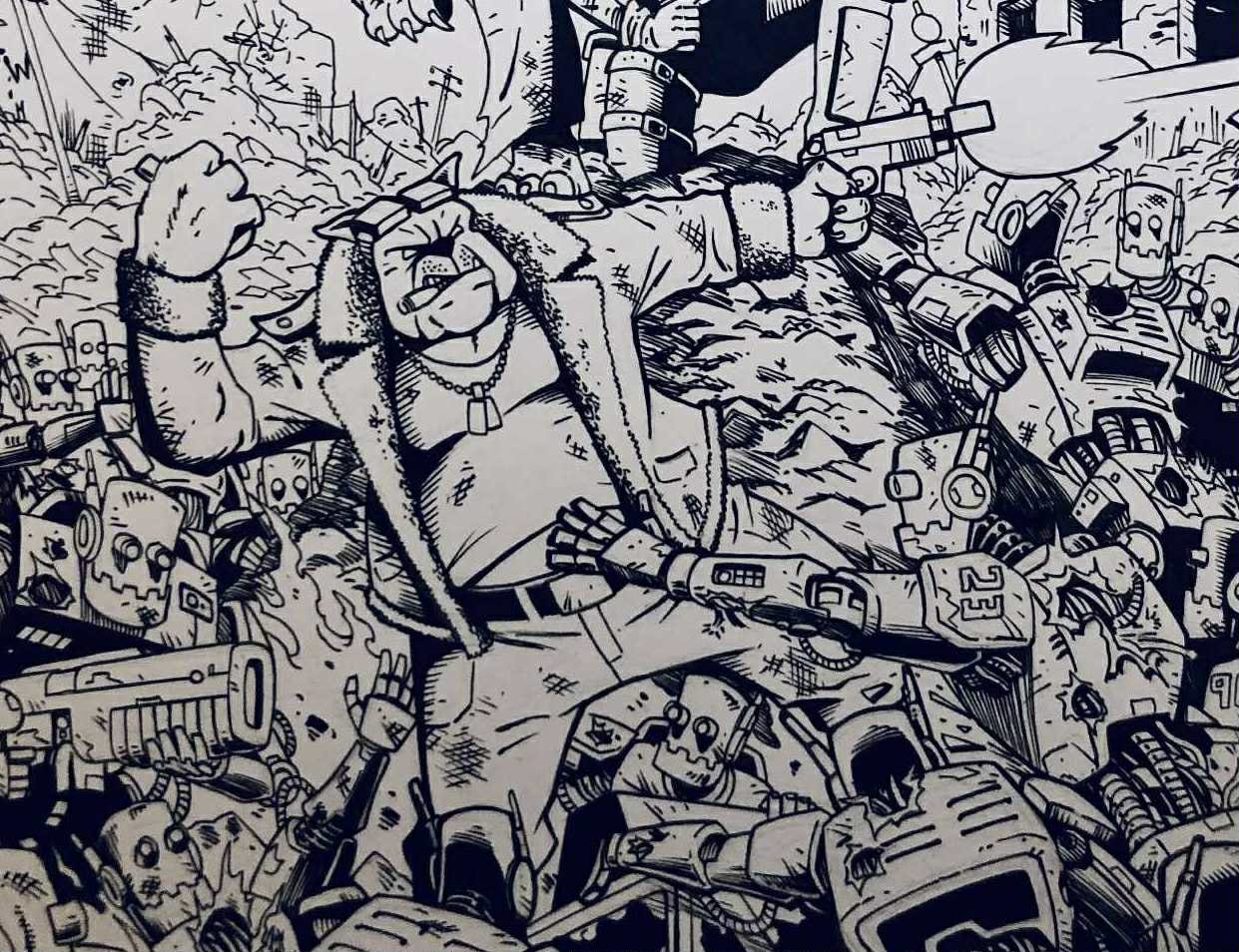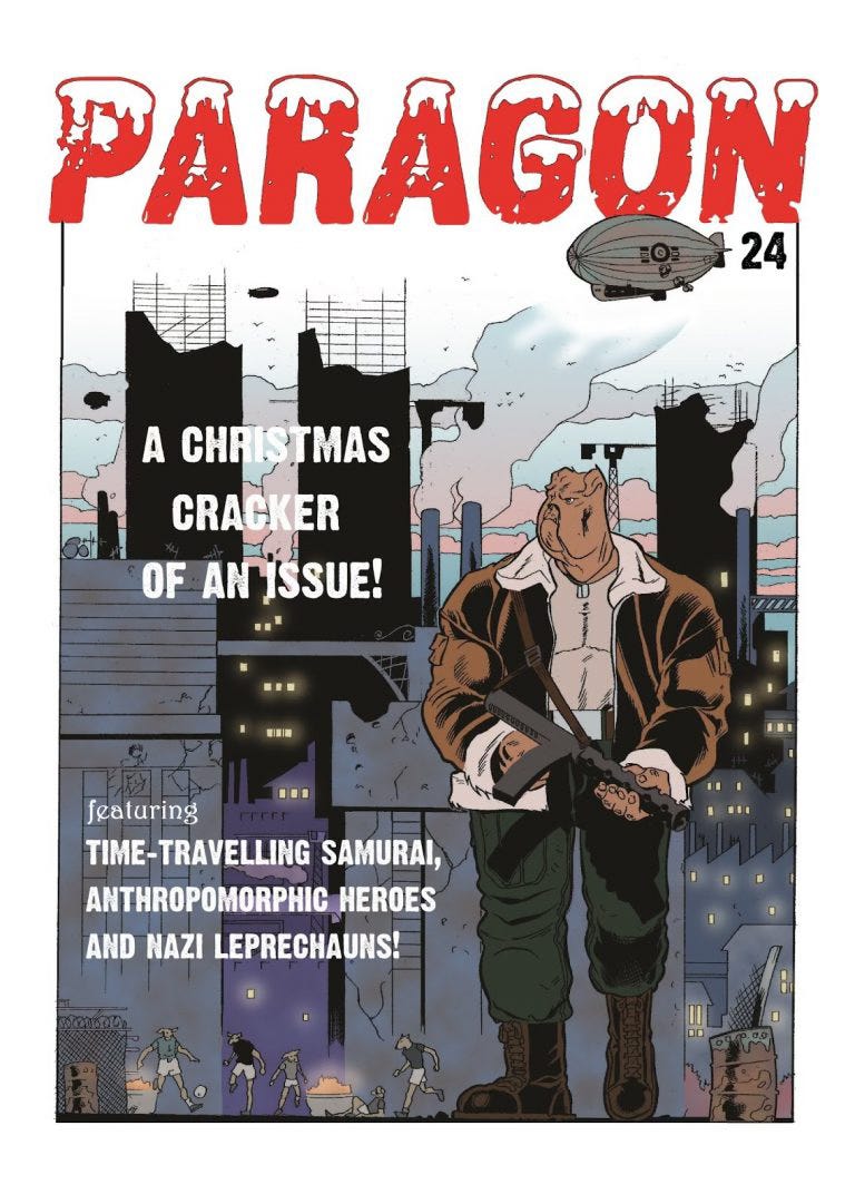 Davey Candlish has published his own small press anthology for many years now, and as I’d folded Bulldog Adventure Magazine, Davey kindly offered to give Bulldog a home in his magazine Paragon (which is fab, by the way). Davey’s reprinted lots of the old Bulldog strips, in many case tarting up the lettering and making a couple of needed edits here and there, and it wasn’t long before he asked me to write some more, most of which was drawn by the much-missed Stephen Prestwood. After Stephen’s passing, I felt a really fun creative partnership had come to an end and I didn’t have the heart to bring back Bulldog for a while, until Davey introduced me to the absolute joy that is the art of Garry Wharton.